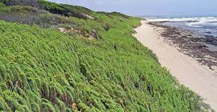weeds. In less than a hundred years it has spread from seed in ship’s ballast in Albany, invading and taking over the dune and beach systems along the entire coastline from Geraldton, in Western Australia to Sydney in New South Wales.